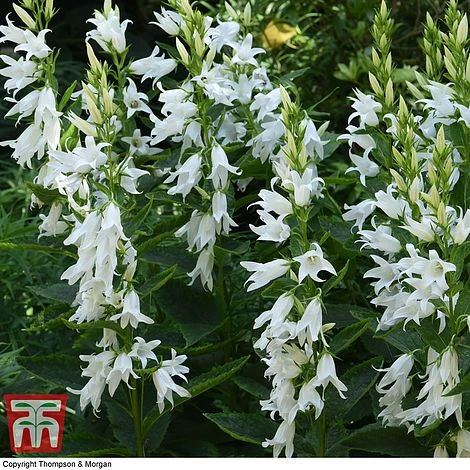 A white Bellflower with dazzling, cup-shaped blooms which rise upon tall stems in early summer. Campanula persicifolia var. alba is a cottage garden essential, illuminating borders with its clean and elegant display. It makes a particularly useful choice for lightly shaded borders where its flowers last longer and help to brighten the gloom. The dark green foliage is evergreen, providing some colour and interest throughout winter. This reliable hardy perennial is ideal for the back of herbaceous borders. The graceful blooms make a fabulous cut flower too. Height: 70cm (27”). Spread: 30cm (12”).