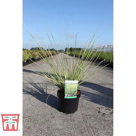 Cortaderia selloana ‘Gold Minipampas’ is a dwarf variety of the well-known, majestic Pampas Grass. Its compact habit makes this a much more realistic choice for the average garden border! This hardy, evergreen grass boasts stiff, narrow foliage, striped in green and gold, which provides valuable texture and structure in the garden, all year round. From August, it sends up flower heads in a mass of fluffy plumes. Perfect for sunny borders and large containers where it makes a superb focal point. Height and spread: 100cm (39″).