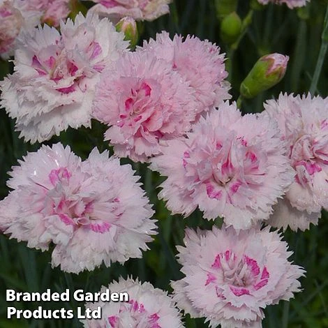 Dianthus ‘Candy Floss’ is a floriferous and highly fragrant variety producing profusions of pale sugar-pink double flowers over a longer period than most. This RHS Award of Garden Merit winner is ideal for rock gardens, pots and edging, forming neat, compact mounds of silvery evergreen foliage that provides year-round interest. This outstanding carnation from the Scent First® series makes a long-lasting cut flower, allowing you to enjoy its sweet perfume to the full! Height and spread: 30-40cm (12-16in).