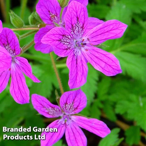 This dainty erodium provides oodles of colour at the front of a sunny border. Above a neat mound of deeply divided leaves, arise long stalks from which burst clusters of dainty flowers etched with delicate veins against a bright pink ground, with contrasting white markings at the centre. Flowering continuously from June to September, this is a perennial which really earns its place in a sunny, well-drained border. Height and spread: 45cm (18”).