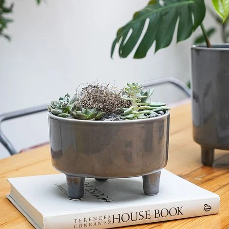 Tap into the minimalist trend with our Slate Pisa bowl. Finished with a premium glaze, this waterproof planter slots into any interior scheme easily, making it the perfect accent piece for those that like a regular décor reshuffle. For best effects, style it on the table with a cacti or succulent arrangement for a charming mid-century statement.